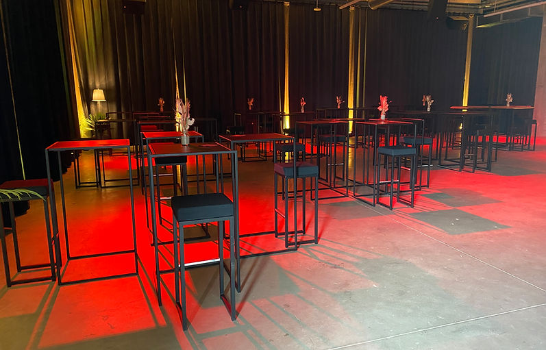 • Basismeubilair: hoge en lage tafels, stoelen, tafeldecoratie